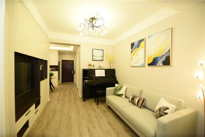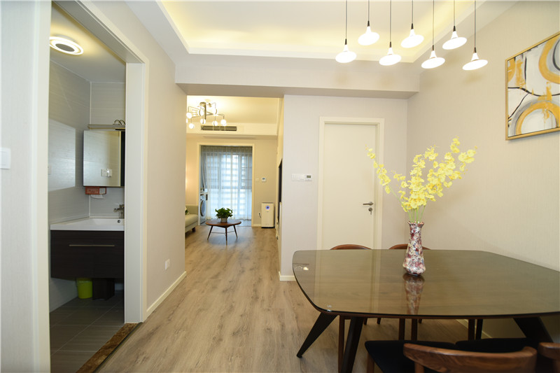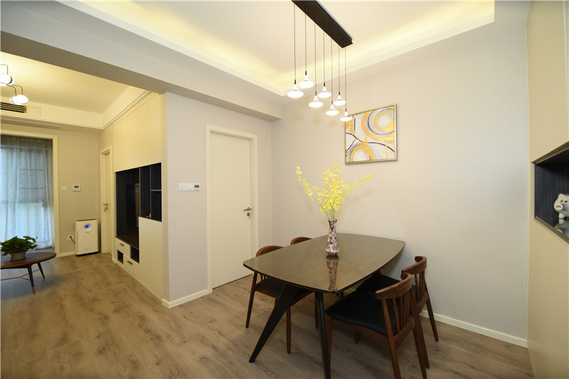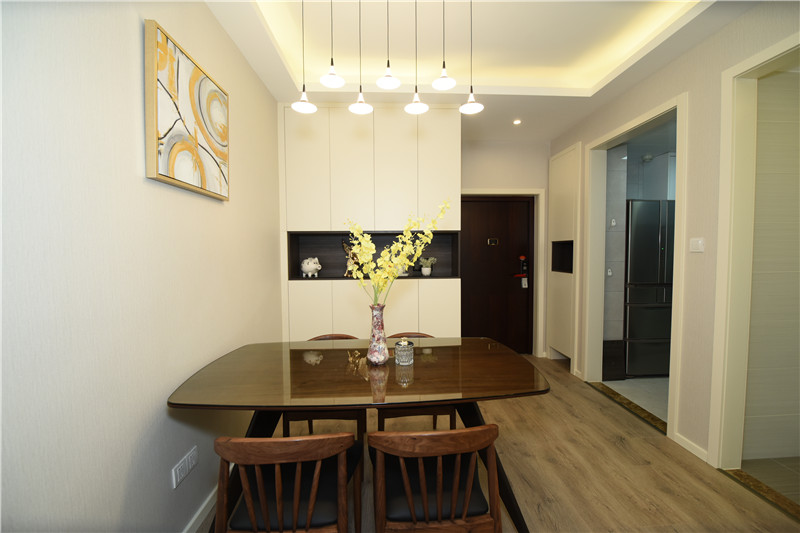 設(shè)計(jì)理念:在設(shè)計(jì)之初就考慮到做木色系現(xiàn)代簡(jiǎn)約設(shè)計(jì)風(fēng)格,希望能做出一個(gè)獨(dú)特的韻味出來??蛷d作為待客區(qū)域,要求簡(jiǎn)潔明快大氣。在色彩描配上主要以淺灰色調(diào)為基礎(chǔ),運(yùn)用了藝術(shù)涂料,表現(xiàn)出簡(jiǎn)單明亮的感覺,在墻面上運(yùn)用了略抽象,冷色系的裝飾畫,散發(fā)出質(zhì)樸的自然氣息和寬敞舒適的感覺。整體簡(jiǎn)約,大氣,接近大自然。電視背景與主臥之間運(yùn)用了裝飾柜作為隔斷,解決了儲(chǔ)物空間,也使電視背景表現(xiàn)了簡(jiǎn)約時(shí)尚又不失材質(zhì)的質(zhì)感,柜門是烤漆工藝,明亮精致。主臥室是無主燈設(shè)計(jì),四個(gè)雙頭斗膽燈承接了整個(gè)房間的燈源,分布均勻,代替了主燈,原墻面藝術(shù)涂料效果,墻面床頭背景運(yùn)用深淺與原墻面對(duì)比,既是一個(gè)色系,也有主次之分,作為主人的私密空間,主要以功能性和實(shí)用舒適為考慮的重點(diǎn),多用溫馨柔軟的成套布藝來裝點(diǎn),同時(shí)在軟裝和用色上形成了統(tǒng)一。