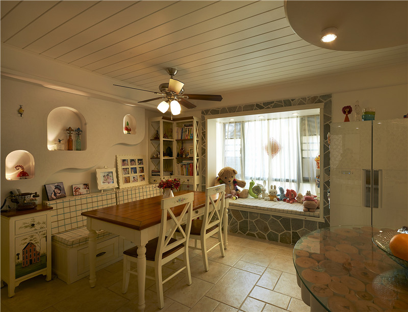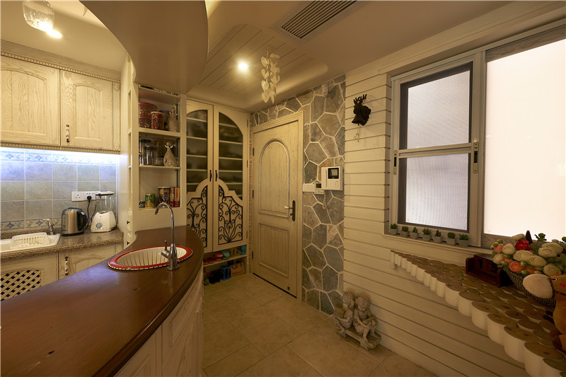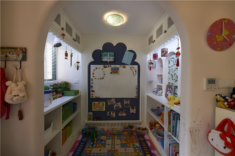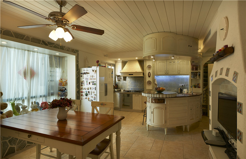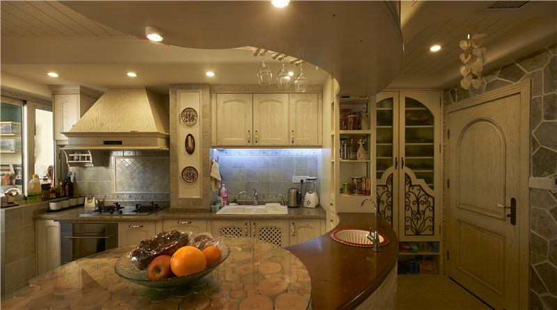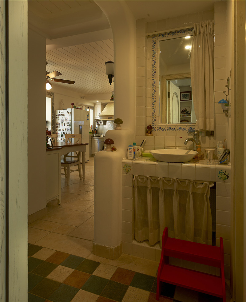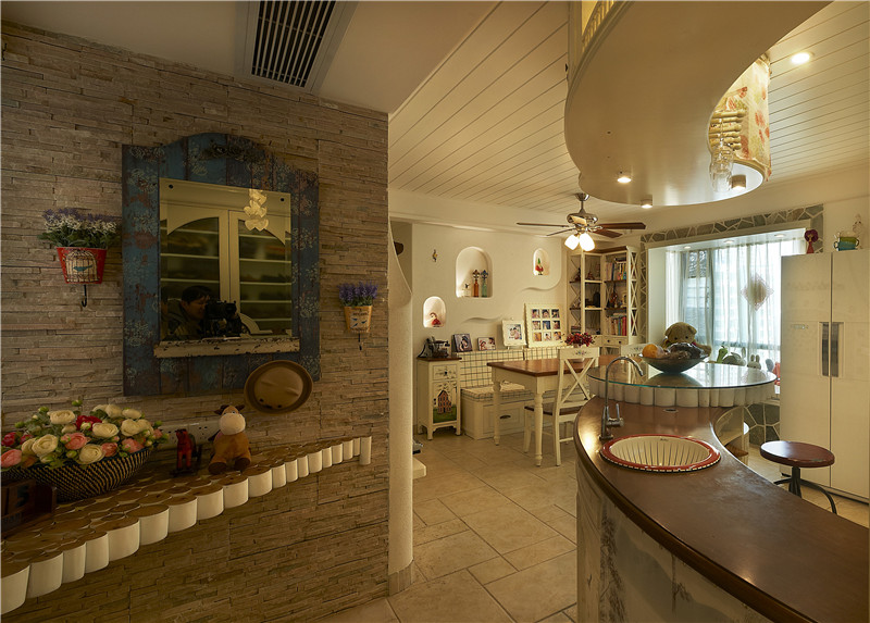 設(shè)計(jì)概念:本案采用的是以地中海的風(fēng)格詮釋出主人公優(yōu)雅舒適的生活態(tài)度。將現(xiàn)代與傳統(tǒng)元素結(jié)合起來,提煉地中海傳統(tǒng)建筑的精髓,去除表象,直達(dá)心里,并充分考慮自然與傳統(tǒng)因素以喚醒人們深藏的場(chǎng)所記憶和文化認(rèn)同感。整個(gè)空間的區(qū)隔均由地中海建筑的典型元素拱門來過渡,更由半穿半鑿方式塑造的室內(nèi)“景中景”做裝點(diǎn),視覺空間極富穿透力和流動(dòng)性,在有限的空間里使其最大程度的呈現(xiàn)出自由開闊。在整個(gè)裝飾上,到處充滿著和諧溫馨,讓人心情舒暢,簡(jiǎn)單質(zhì)樸的墻面渲染著地中海的情懷,大自然的色彩就是這樣的背景上展開綠植、掛畫、彩色陶土磚、馬賽克拼貼,各就其位,呈紅黃綠的色彩組合,沒有矯揉造作,似乎有點(diǎn)原始,但卻是本色自然。無論是公共空間或是私密區(qū)域,都遵循這樣的裝飾手法,裝飾元素不斷呼應(yīng)和延續(xù)整個(gè)空間在變化擁有統(tǒng)一的特質(zhì),溫情無處不在。