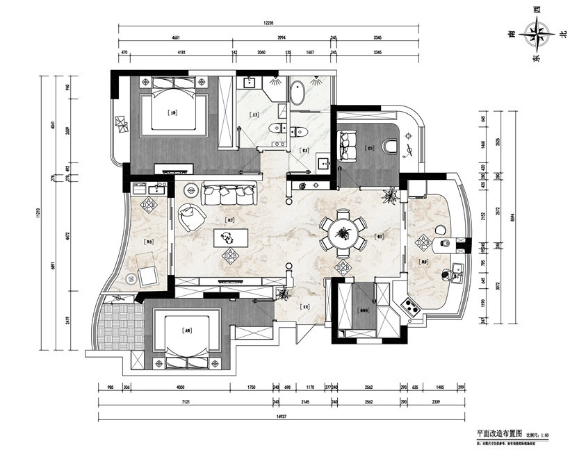 陽臺(tái)占據(jù)了太多空間,又沒有實(shí)際用途。我們有重新對(duì)功能進(jìn)行分區(qū),并解決臥室的收納等問題,