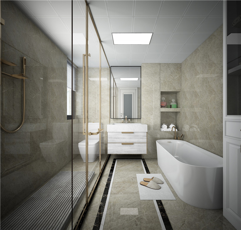 餐廳量體過低的問題,擴(kuò)寬過道增加了衛(wèi)生間的操作尺寸,同時也配備了一組儲物柜,使整個空間滿足儲物和美