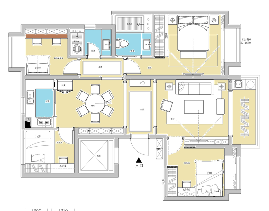 設(shè)計(jì)說(shuō)明: 本案的主題為現(xiàn)代輕奢風(fēng)格,簡(jiǎn)約俐落的質(zhì)材鋪敘與敞明大方的格局尺度,是輕奢風(fēng)定調(diào)的設(shè)計(jì)居宅中,不可或缺的重要元素。在案例中,設(shè)計(jì)師以陳設(shè)藝術(shù)品及金屬線條材質(zhì)來(lái)營(yíng)造大氣、自然、輕奢的裝飾美學(xué)氛圍。墻面、地面、家具陳設(shè)等均以簡(jiǎn)潔的造型、精細(xì)的工藝為其特征,強(qiáng)調(diào)品質(zhì)感和細(xì)節(jié)處理。在色彩搭配方面以暖色為主,溫馨的客桌花束、明黃色的搭毯、直觀大氣的金屬材質(zhì),帶著淡淡的隨意,隨著輕輕的希冀讓人感受到的是空間彌漫的溫馨與舒暢。