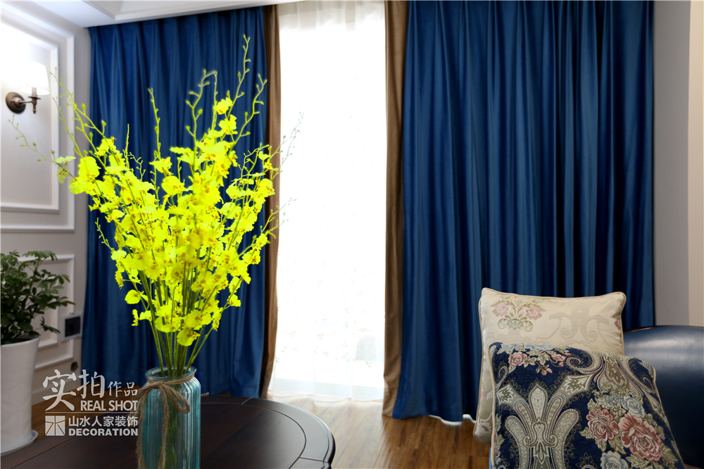 整體顏色以明亮輕快為主,因?yàn)樽≡谝粯堑脑颍昂蠖加性鹤訕?shù)木遮擋,采光是第一位。廚房利用了后面陽(yáng)臺(tái)區(qū)域,擴(kuò)大廚房的實(shí)用功能,家里的老人會(huì)在院子種花花草草,也多了一處工具的擺放區(qū)??蛷d背景墻是一處小亮點(diǎn),美式經(jīng)典款花鳥(niǎo)圖的壁紙加上寶石藍(lán)的窗簾相得益彰,打開(kāi)陽(yáng)臺(tái)門,院子的花草一覽無(wú)余,也多了一份情趣,陽(yáng)光,花鳥(niǎo),搖椅,別有一番風(fēng)味。臥室大都以簡(jiǎn)約溫馨為主,沒(méi)有壓抑的色彩,沒(méi)有城市的喧囂,在這個(gè)溫性的世界里,它只屬于你。