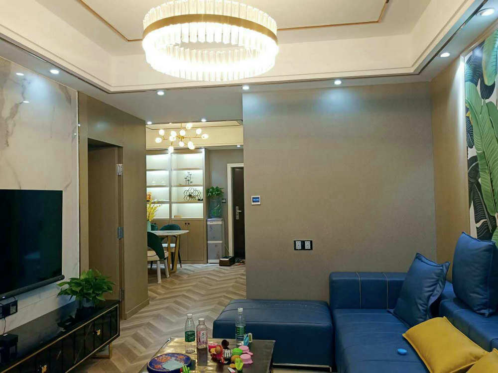 客廳吊頂設(shè)計復(fù)古井字造型,白色石膏線跟業(yè)主想要的沉穩(wěn)感覺不搭,于是用墻板包了一排,并適配了實木線條。地面的布置同樣花了不少心思,淘了很久才找到的花磚,并做了波導線的造型,更好地美化環(huán)境,同時利用角花做了簡單的分區(qū),層次感分明。