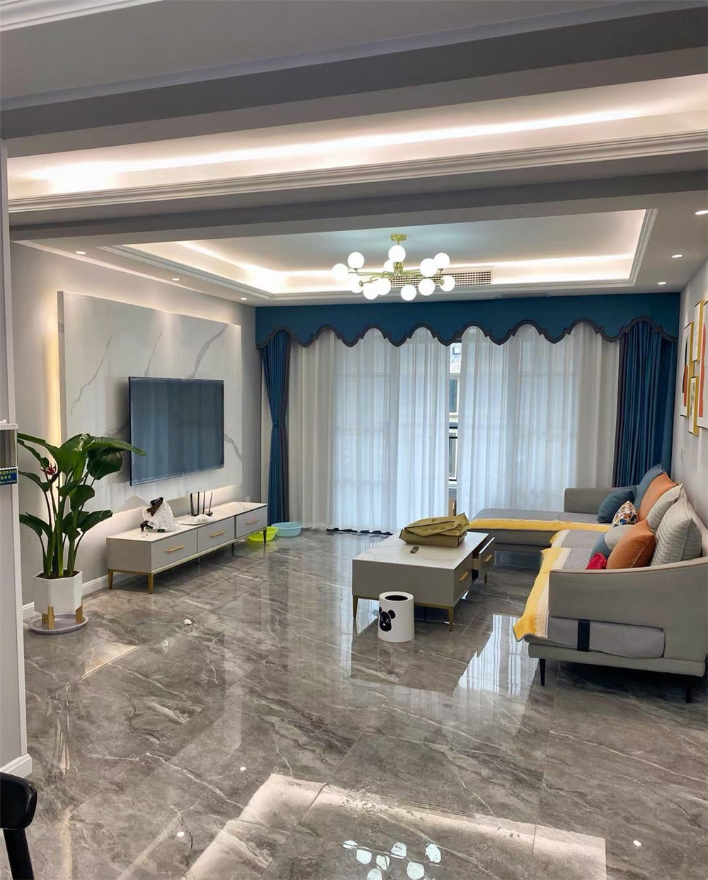 本案的主題為現(xiàn)代輕奢風(fēng)格,客餐廳過(guò)道吊頂都選擇明亮的燈帶吊頂,為家里的氛圍提供了大氣的環(huán)境。體現(xiàn)精致,在墻面造型上追求簡(jiǎn)潔。加入軟裝的點(diǎn)綴,使得整個(gè)空間非常有層次感。