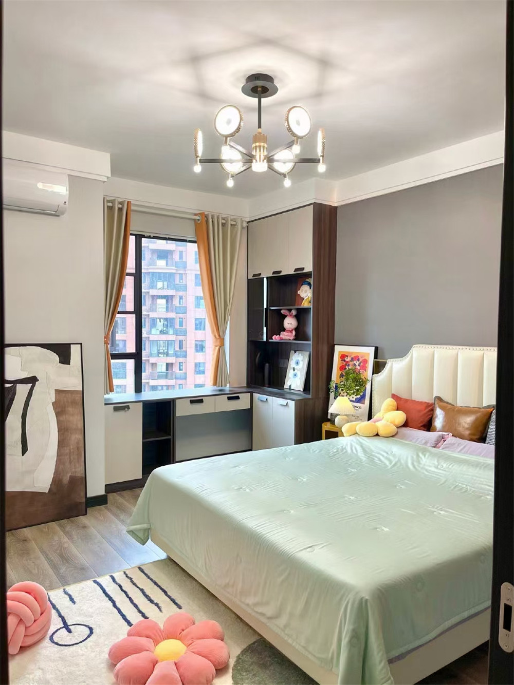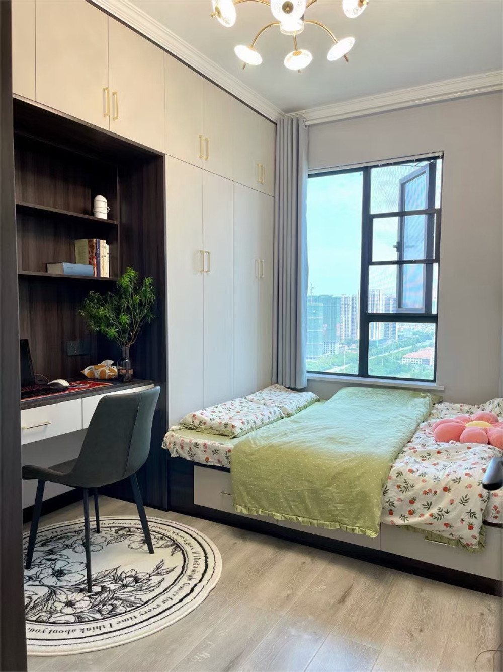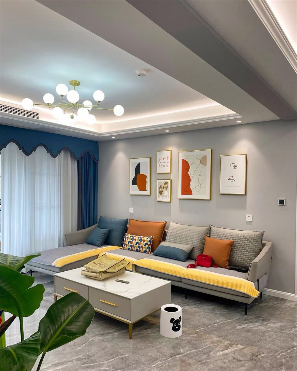 客廳背景墻采用現(xiàn)在比較流行的巖板鋪貼造型,墻面采用的是乳膠漆調(diào)色處理。簡(jiǎn)約而不簡(jiǎn)單,也比較環(huán)保。因?yàn)榧依锖笃谟欣先诵『⒌木幼。h(huán)保這一塊還是非常重要的。沙發(fā)背景就是使用的掛裝飾畫(huà),看起來(lái)整體比較協(xié)調(diào)。臥室這一塊考慮到兒童房的設(shè)計(jì),就采用了榻榻米的布置格局。房間簡(jiǎn)約溫馨,房間吊頂不考慮中央空調(diào)和風(fēng)管機(jī),所以就采用簡(jiǎn)單的石膏板雙眼皮設(shè)計(jì),還有石膏線條的設(shè)計(jì),前后呼應(yīng)一種簡(jiǎn)約不簡(jiǎn)單的低調(diào)華麗的裝飾效果。