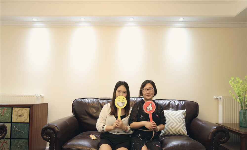 選用巖板餐桌,魚肚白紋理延伸出亮面巖板,顯得明亮整潔。磨邊后的圓角防止意外磕碰,體現出柔和安全的特質。餐椅則是千鳥格色+橘色的組合,搭配金色桌腿更顯一份精致。平時業(yè)主也會喊上一些朋友聊天聚會、分享美食,快樂又自在。