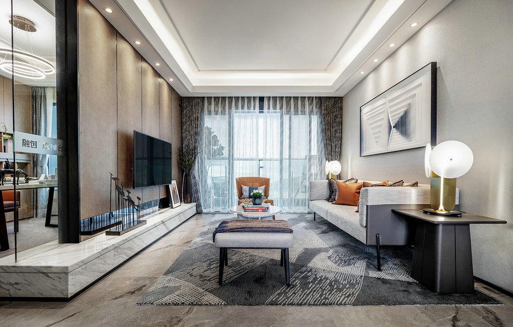 為此設(shè)計(jì)師逐一做了調(diào)整與規(guī)劃:(1)把正對(duì)入戶(hù)門(mén)的墻往主臥推300mm,并打造了端景造型;(2)增加電視背景墻的長(zhǎng)度,并對(duì)稱(chēng)做了隱形門(mén)處理,避免次臥出現(xiàn)隱私性差的問(wèn)題;拆除原有的陽(yáng)臺(tái)梭門(mén),將陽(yáng)臺(tái)和客廳空間互融,增加客廳的視覺(jué)空間感;同時(shí)將原客廳大陽(yáng)臺(tái)納入一半給主臥,使其成為一個(gè)舒適的生活空間。