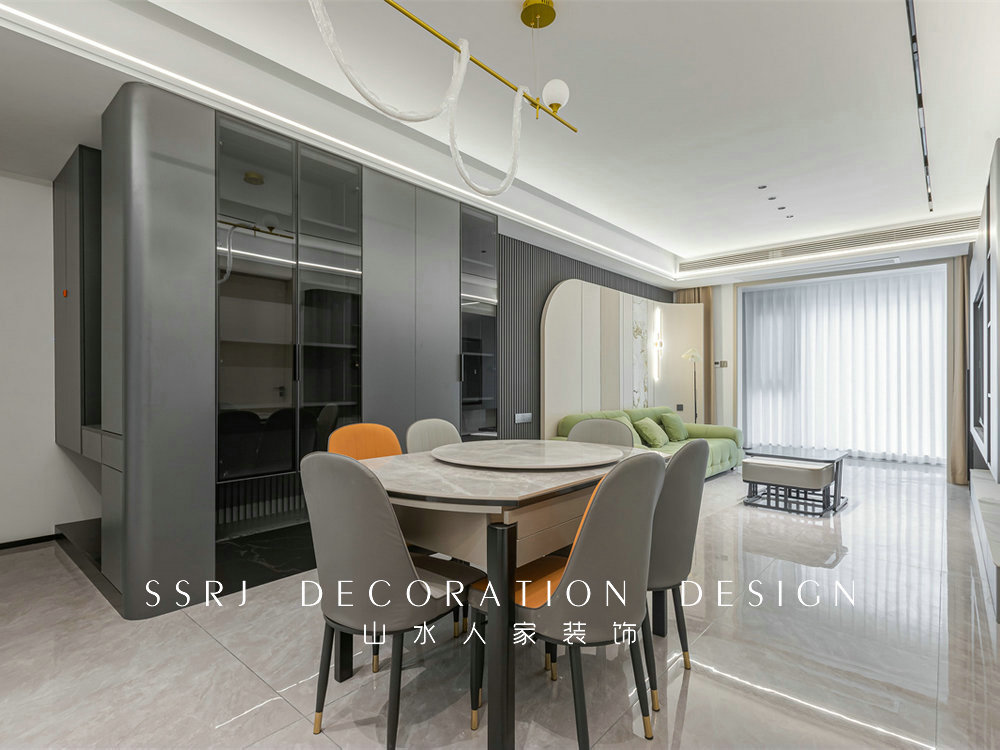 餐廳整體風(fēng)格同客廳保持一致,色調(diào)清新自然。搭配上流暢的線條和明亮的燈光,打造了輕松自在的用餐環(huán)境。又因空間格局的充分利用,由此保證了最大程度的通透。