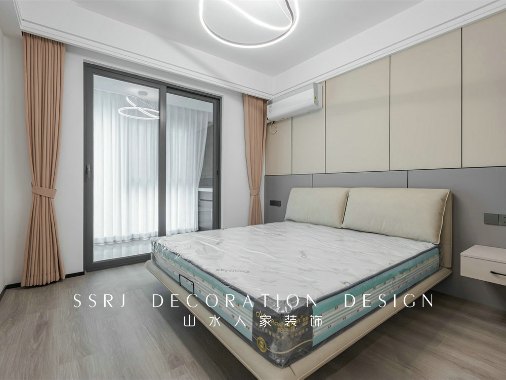 主臥配色相當(dāng)溫柔清麗,淺色背景墻搭配灰色床頭,在色彩方面顯得協(xié)調(diào)完整。沒(méi)有多余修飾的床單,輕快之余流露出溫馨氣質(zhì),便于打造出沉穩(wěn)而不沉悶的生活環(huán)境。