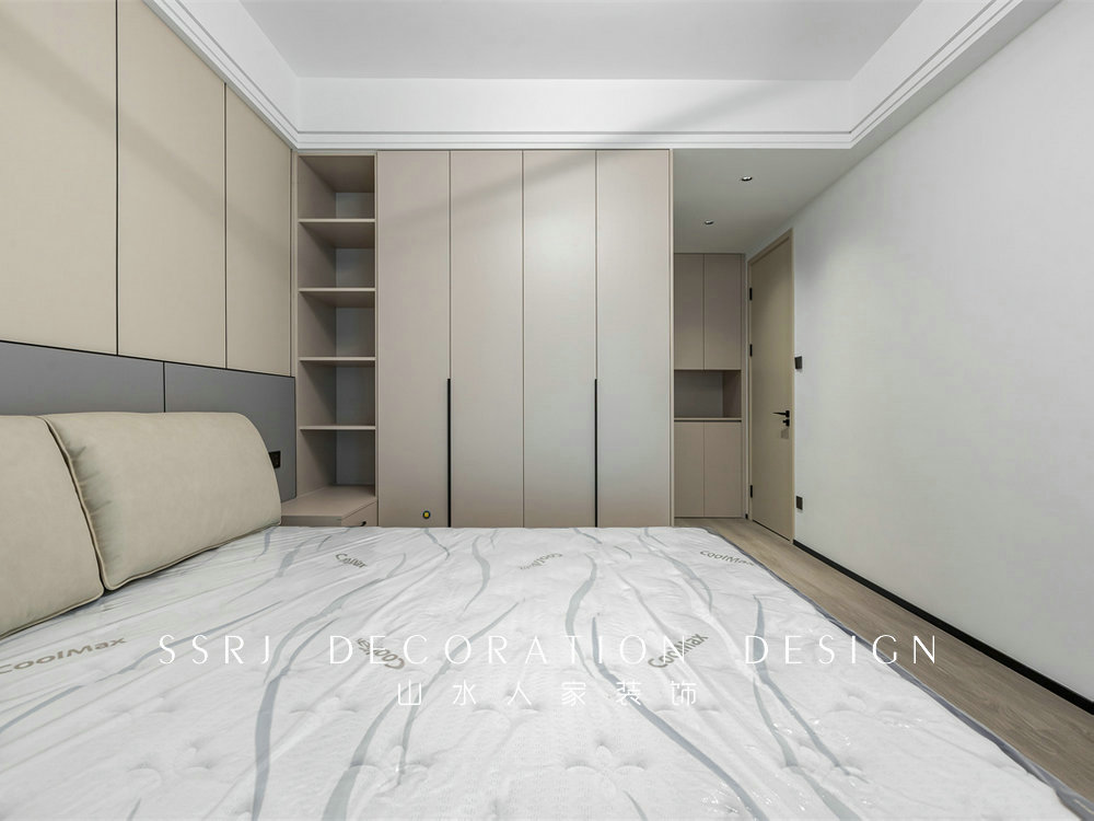 為了強(qiáng)化家居的儲(chǔ)物功能,臥室進(jìn)門(mén)口同樣設(shè)置了到頂過(guò)道柜。封閉式柜子的存在,能夠隱藏內(nèi)部的物品,還可以起到防灰的作用。