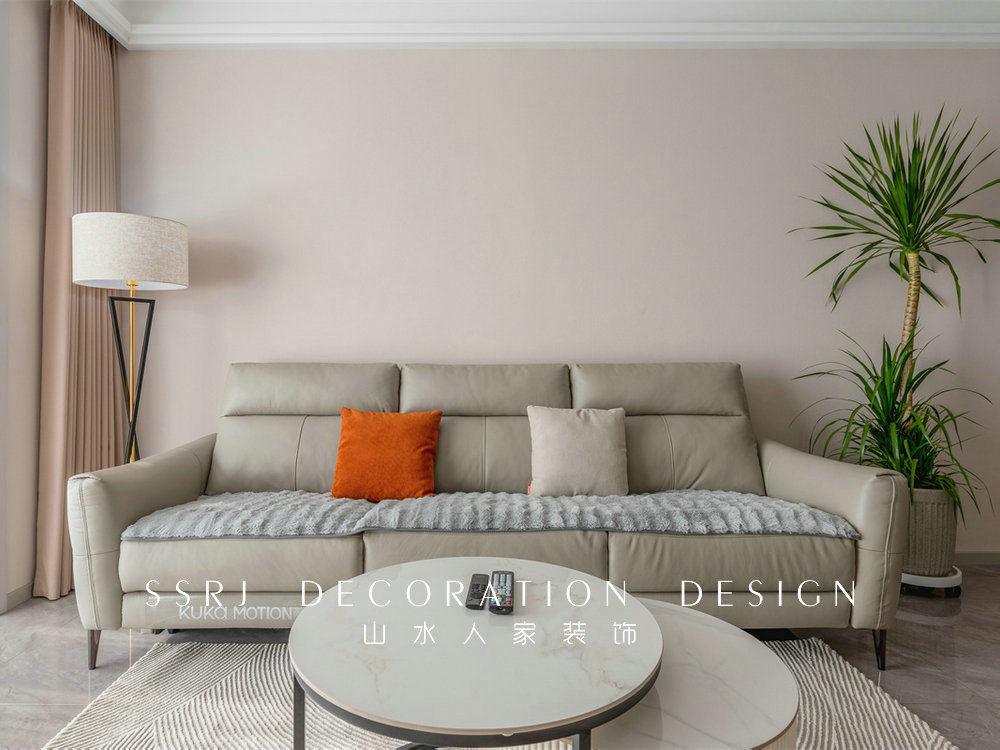 暖色系的背景墻和家具色彩風(fēng)格保持一致,實(shí)現(xiàn)較好的視覺效果??萍疾忌嘲l(fā)搭配圓形茶幾,使家庭更加舒適和時(shí)尚。再加上落地?zé)艉途G植的點(diǎn)綴,以浪漫、溫馨的氛圍表達(dá)業(yè)主自然、高雅的生活情趣。