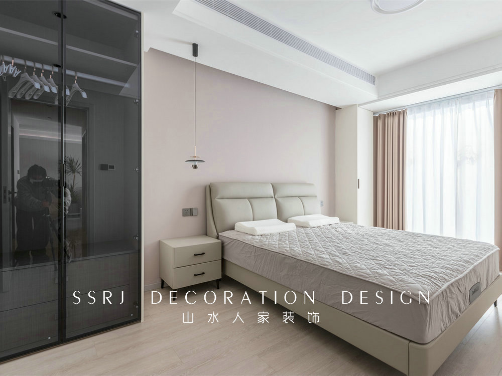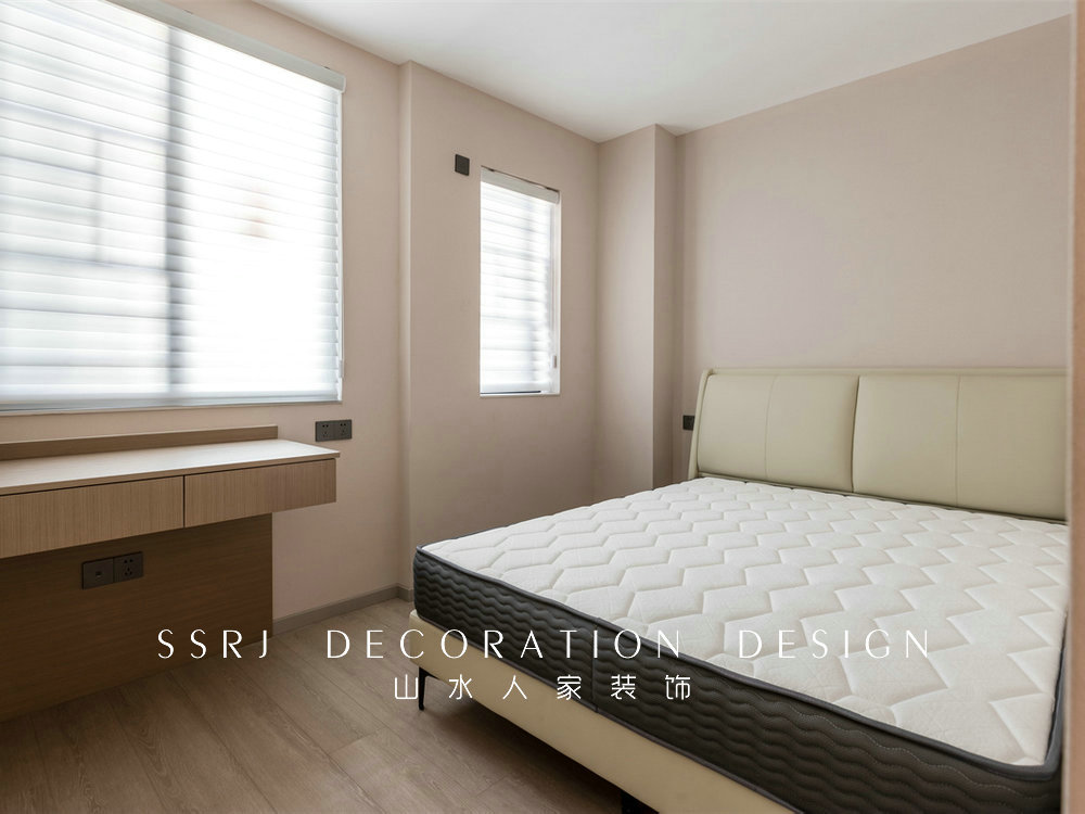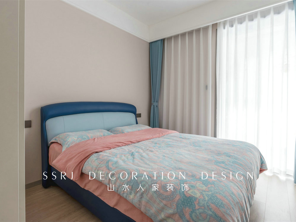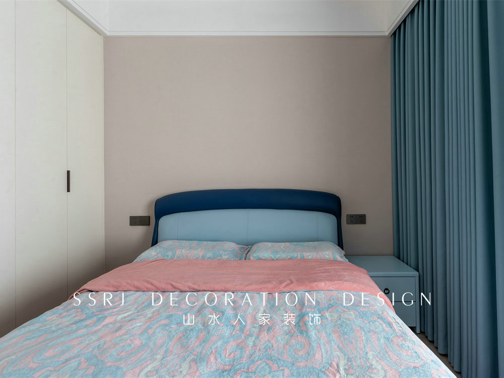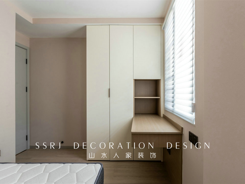 次臥的風(fēng)格比較溫馨實(shí)用,同樣用到暖色系的墻布,空間更顯柔和。搭配適宜的中性色,賦予空間別具一格的清爽體驗(yàn)。