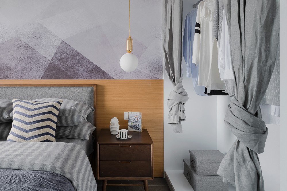 除此之外,房間是比較常規(guī)的家居布置??臻g大面積留白,一眼透亮,提供了舒適安逸的休息環(huán)境。側(cè)面定制到頂衣柜,柜體設(shè)計(jì)較為豐富,滿足不同層次的收納需要。