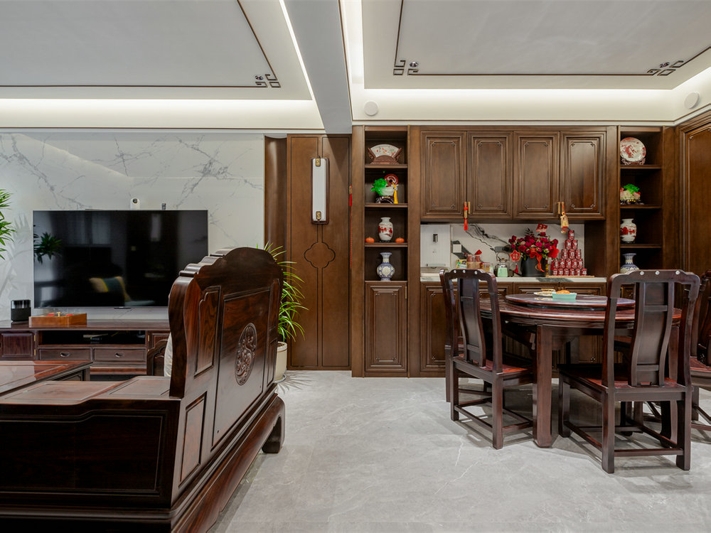 業(yè)主一家三代同堂,上有年邁的父母需要照顧,下有年幼的孩子正在成長,因此對于新家的設計有著極高的要求:既要滿足日常生活的便捷與舒適,又要兼顧每個家庭成員的隱私與個性需求。通過融入中國傳統(tǒng)文化元素,搭配古色古香的紅木材質,讓家成為文化與情感交流的重要場所。