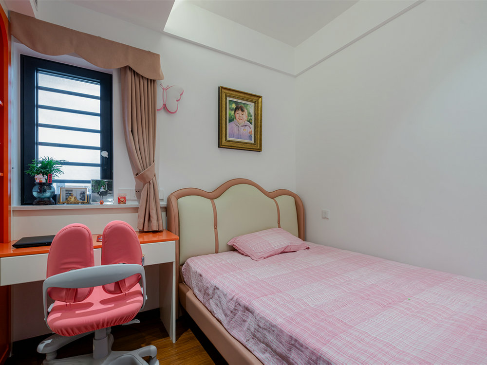 女孩房重新調整了床的朝向,書桌靠窗,充足的采光更利于孩子的視力發(fā)育。房間大量用粉色系裝飾,充滿溫柔細膩的觸感以及甜甜的氣息。