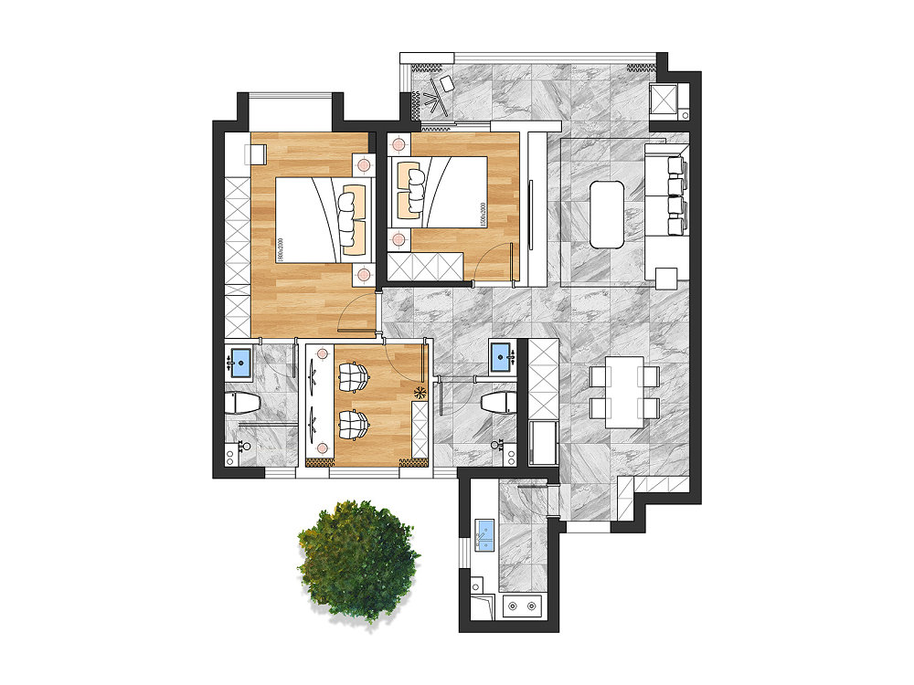 業(yè)主一家對(duì)于家居環(huán)境有著較高要求,索性直接將到手的精裝房拆了重裝??臻g主調(diào)應(yīng)用低飽和度色系,搭配黑色系時(shí)尚軟裝及綠植盆栽等,更為深刻地刻畫了空間的舒適度與高檔的生活品質(zhì),諸多變化讓人心動(dòng)連連~