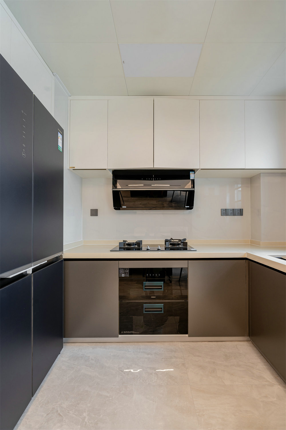 廚房采用U型櫥柜設(shè)計,冰箱、水槽、灶臺之間形成優(yōu)良使用動線,相應(yīng)提升了廚房烹飪效率。操作區(qū)預(yù)留充足臺面空間,可同時容納食材準(zhǔn)備與電器使用。