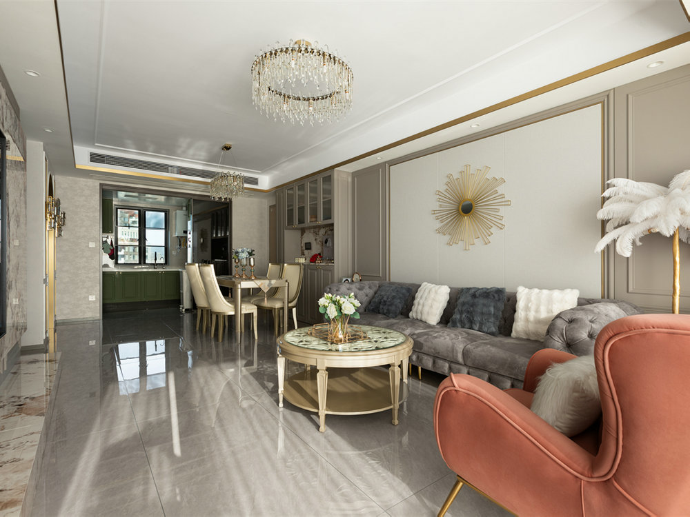 業(yè)主是一對(duì)中年夫妻,注重品質(zhì)生活,喜歡線性美式的穩(wěn)重大氣,希望自己的新家充滿明媚感。于是空間基調(diào)以香檳色為主,搭配品質(zhì)軟裝,高級(jí)不顯亂。陽(yáng)光灑進(jìn)來(lái)像鍍了金邊,彰顯貴氣慵懶感。