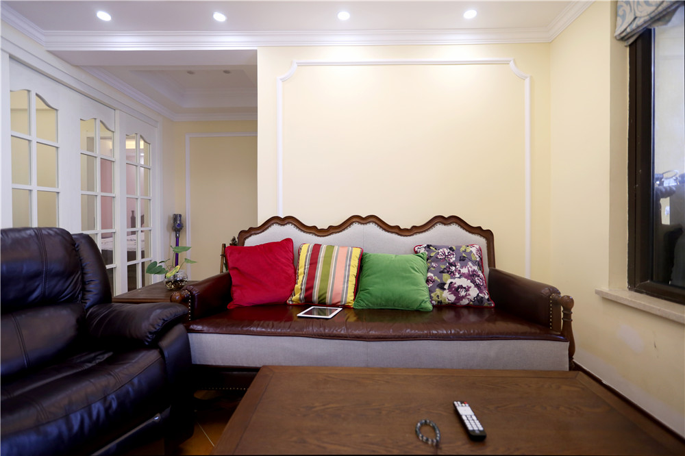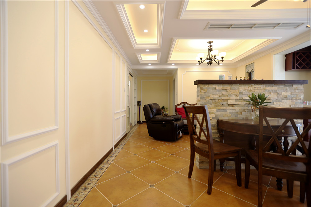 這是一套標準的美式風格設計,傳統(tǒng)的美式深咖色家具,米白色墻面共同營造出了一種悠閑安靜的居家氣氛。