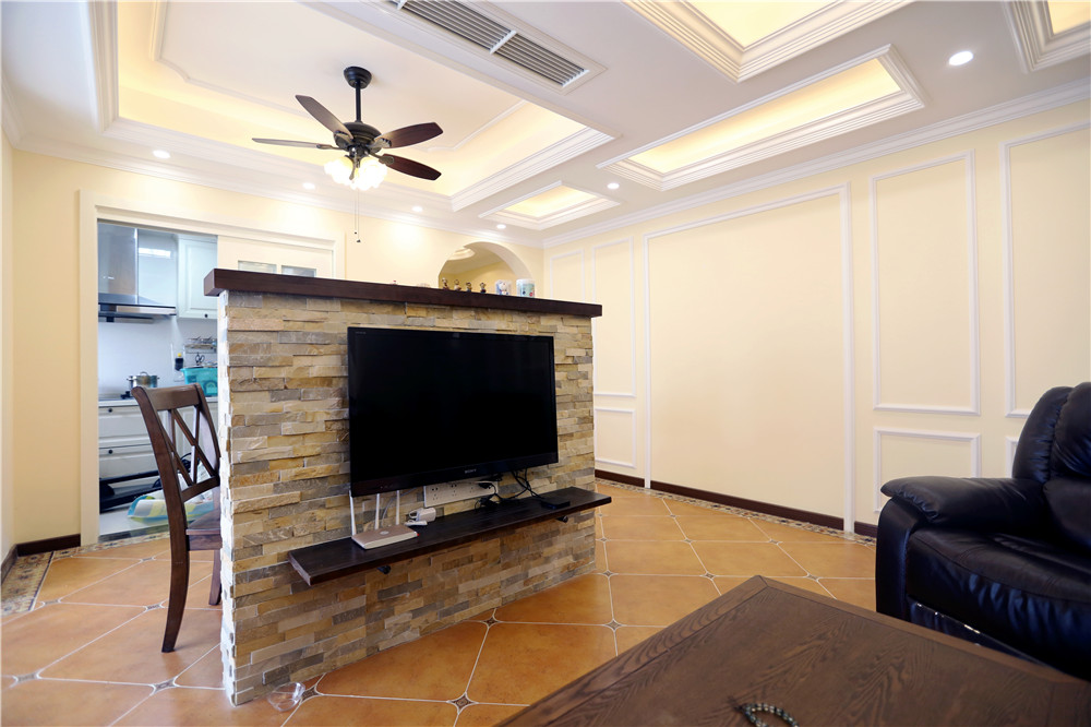 三五好友相聚,背倚“吧臺”,一邊吃著從廚房端上來的水果零食,一邊聊著過往。頭上的吊扇燈,一物兩用,讓古典和現(xiàn)代完美融合。