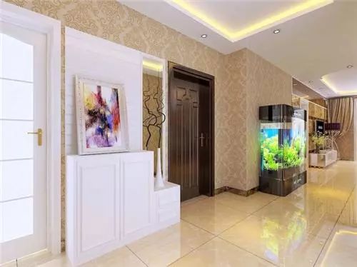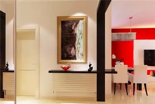 玄關(guān)是開門后看到的第一個(gè)風(fēng)景,所以它的裝飾是非常講究的。圖中的整個(gè)玄關(guān)非常具有藝術(shù)氣息,它的下面是一個(gè)展示柜,可以用來(lái)擺放一些美麗的工藝品,上面則是一副精美的油畫,它簡(jiǎn)直就是室內(nèi)一道美麗的風(fēng)景。